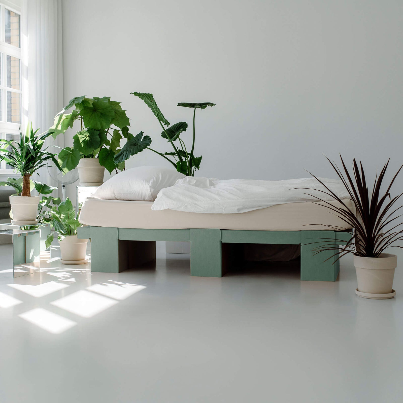 A causa dell'alto contenuto riciclato (54 - 80%), i mobili in cartone ondulato utilizzano pochissime risorse. Le fibre di carta fresca che forniscono la necessaria stabilità dei mobili provengono esclusivamente da foreste gestite in modo sostenibile. I mobili possono essere completamente riciclati alla fine del loro ciclo di vita. Basta buttarli nel bidone della carta in modo che il materiale ritorni nel ciclo di riciclo. Oltre al basso consumo di risorse, i mobili in cartone rilasciano molto meno CO2 e sono più ecologici rispetto ai mobili convenzionali. Ad esempio: il letto 2.0 ha un'impronta ambientale significativamente inferiore rispetto a un letto convenzionale. L'impronta di CO2 - e quindi il contributo al riscaldamento globale - è 280 volte più bassa, utilizza 8.000 volte meno energia e il trasporto è anche 4 volte più ecologico grazie al suo peso leggero.