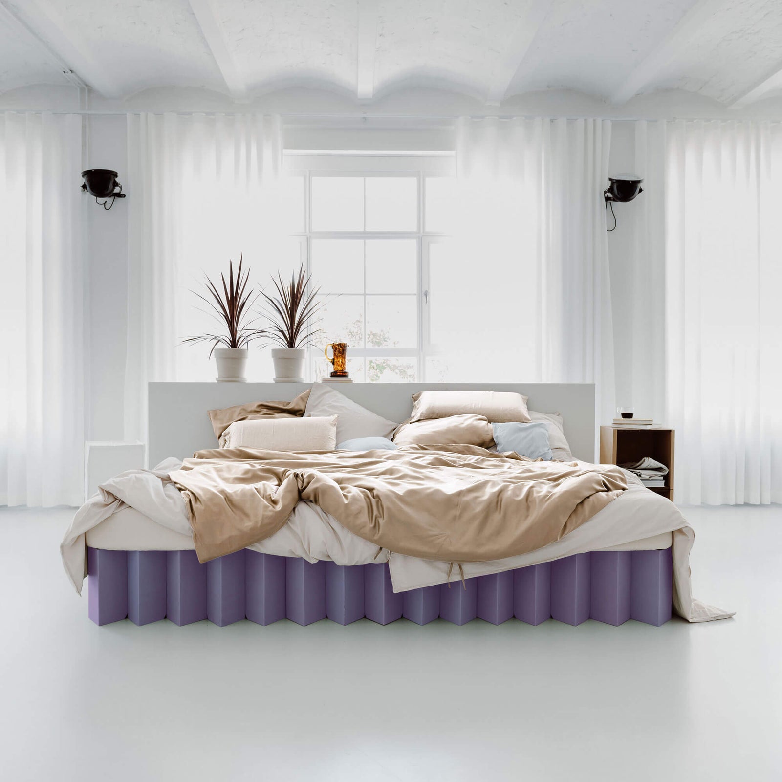 Il Letto 2.0 si piega piatto in modo da poterlo riporre per risparmiare spazio. Quando lo si appoggia di lato, è possibile mettere il materasso sopra di esso contro il muro.