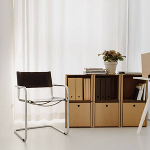 Allora, uno scaffale 08/15 dopo tutto? No! Lo scaffale di cartone si comporta altrettanto bene dei suoi omologhi ordinari, perché è fatto di cartone ondulato di alta qualità, che ne garantisce stabilità e durata. Tuttavia, in termini di peso e sostenibilità ambientale, lo scaffale di cartone può probabilmente superare la maggior parte degli scaffali standard. Con un contenuto riciclato dal 54 % all'80 %, è leggero e particolarmente ecologico e può essere completamente riciclato (attraverso il bidone della carta). Nella lavorazione del cartone ondulato vengono utilizzati solo inchiostri a base d'acqua ecologici e colla di amido vegana fatta di amido di mais.