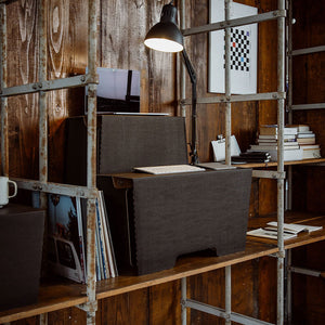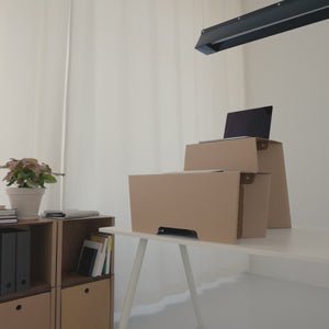 Stare seduti per lungo tempo non ha solo un impatto negativo sulla nostra salute, ma anche sulla produttività. Tuttavia, molti arredi per ufficio e soprattutto gli uffici domestici non sono progettati per lavorare in piedi. Ecco perché abbiamo sviluppato l'estensione della scrivania MonKey Desk. La MonKey Desk trasforma qualsiasi scrivania in una scrivania da lavoro in piedi in pochi secondi e consiste in una scrivania per il monitor e una scrivania per tastiera separate. Così rapidamente come viene montata, può essere smontata. Quando piegata, la MonKey Desk può essere riposta nella scatola portaoggetti accanto alla scrivania per risparmiare spazio.