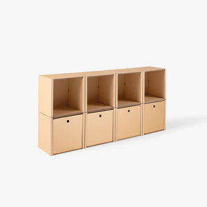 Meravigliosamente versatile: questa mensola composta da 8 moduli può coprire una vasta gamma di esigenze ed è quindi la nostra stella segreta tra le mensole. È perfettamente adatta come mensola per l'ufficio e ti aiuta a organizzare il tuo ambiente di lavoro in modo ancora più chiaro. Si presenta bene anche come credenza, completata da cassetti che possono contenere ogni tipo di piccoli oggetti. Nella versione aperta, offre abbondante spazio per la tua collezione di libri e può anche crescere con te se necessario. Scegli una delle nostre versioni preconfigurate o progetta da solo la mensola dei tuoi sogni da qualsiasi numero di moduli e inserimenti qui.